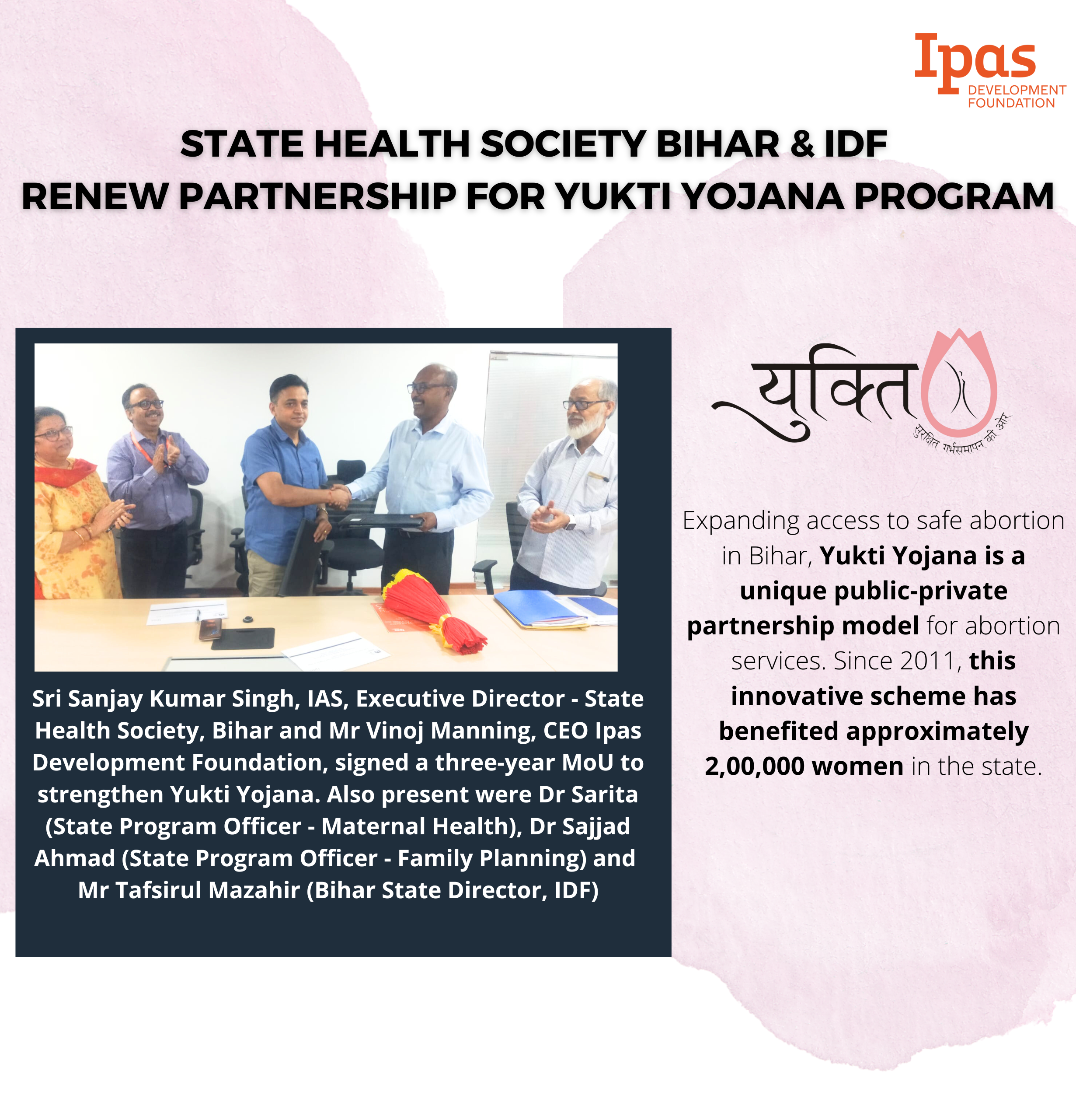 We are technical partners to the Ministry of Health and Family Welfare for implementation of laws and policies related to abortion and contraception.